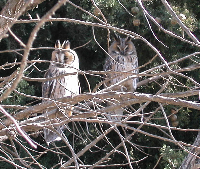 The owls are a family of adult and juvenile Long-eared owls which have