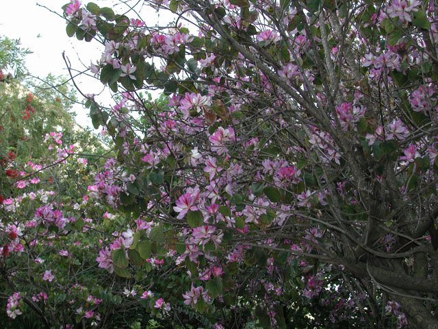 I think this is Bauhinia purpurea בוהיניה ארגמנית. The leaves and flowers match the pictures on the web.